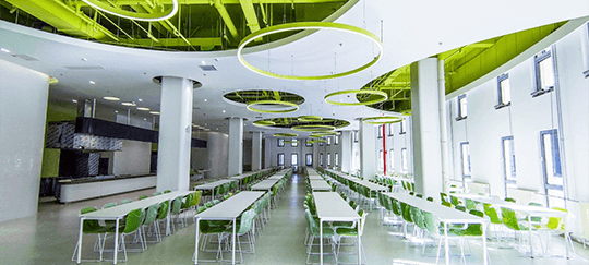 小學部采取走讀制(備有午休鋪位)與寄宿制相結合方式。初中部和高中部采取寄宿制。學生公寓4—6人一間,設有獨立盥洗室,每人均設有獨立收納柜。公共區域設有學生休息區,配有洗衣機、直飲水機。柔潤的空間布局、柔和的燈光色調、柔美的綠色植物,促進學生情感共鳴,增強學生歸屬感,營造一個溫馨的學生之家。